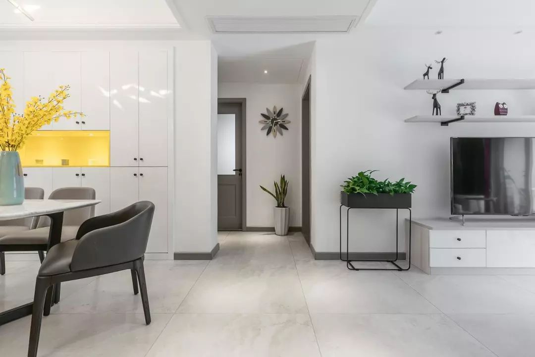 推门而入,纯净的白色和温暖明亮的黄色的玄关鞋柜不但增加收纳空间,还格外地显得温馨。