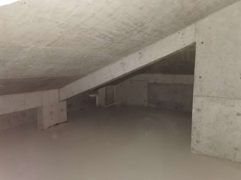 中间能利用的地方是铺贴瓷砖,周围不怎么用的地方只是把地面清理干净,刷上地固,后期如果需要利用再说。