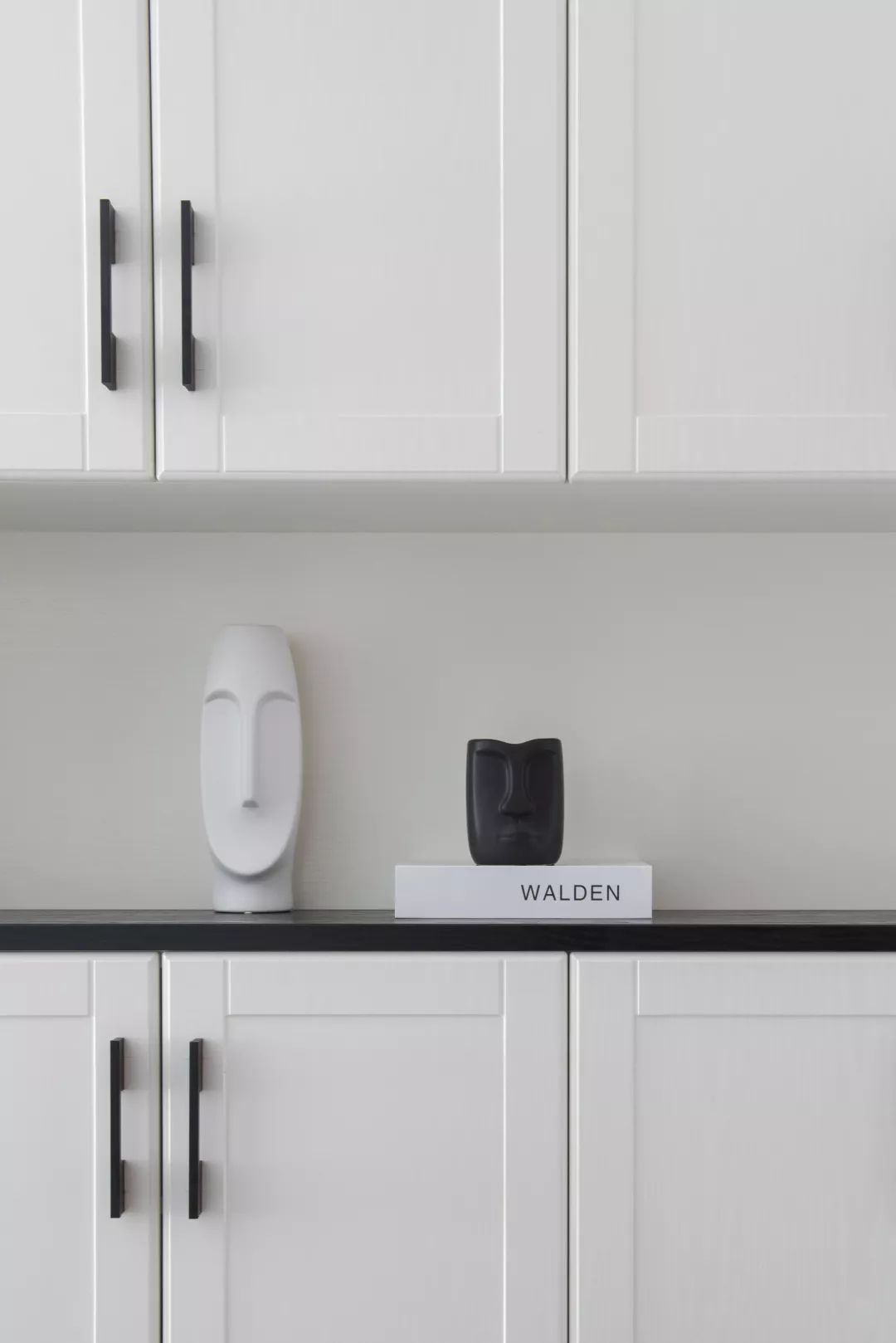 ▲ 玄关柜中部留空,便于生活小物件的取用。白色柜门搭配黑色把手,简洁明了。