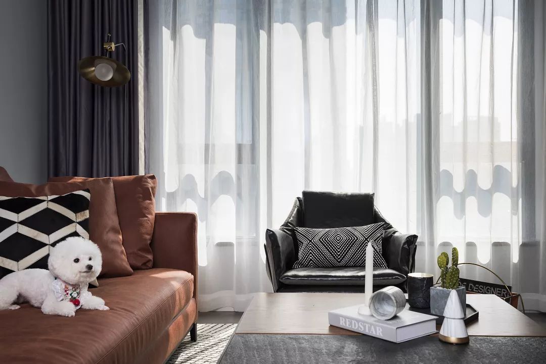 ▲ 临窗一张黑色单人椅,在窗帘与窗纱的映衬下,让客厅多了一份悠闲散漫。