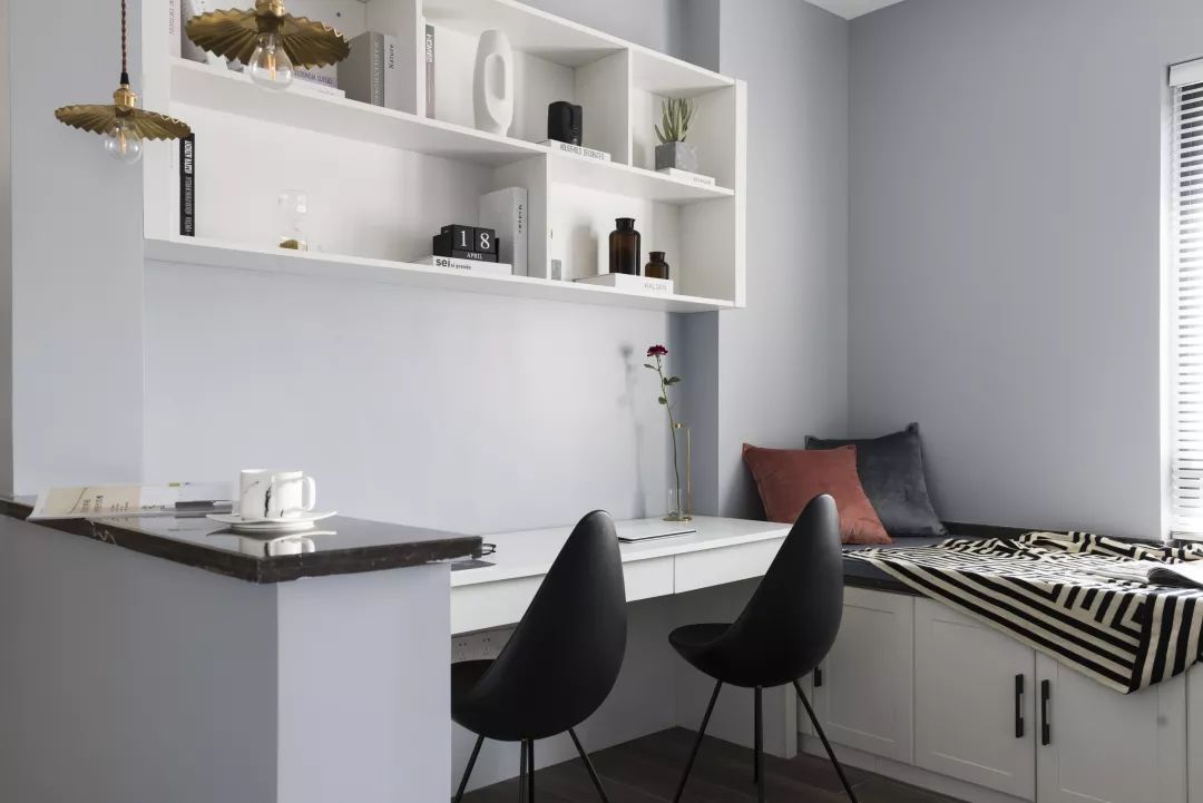 ▲ 靠窗合并了室内机位置做了一个收纳式的飘窗,工作累了就可以躺在飘窗上偷个小懒,既可以休息也可以储物,一举多得。