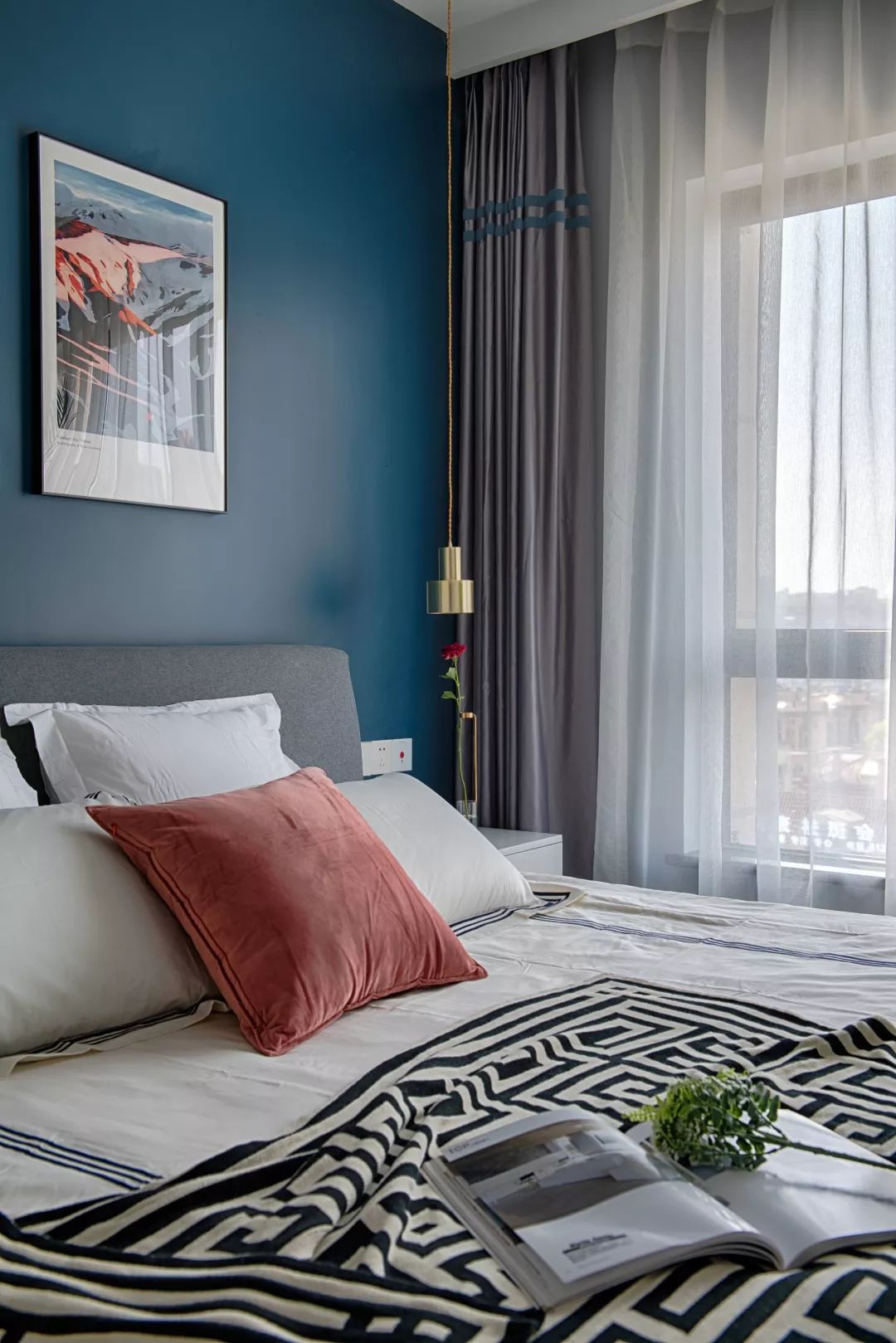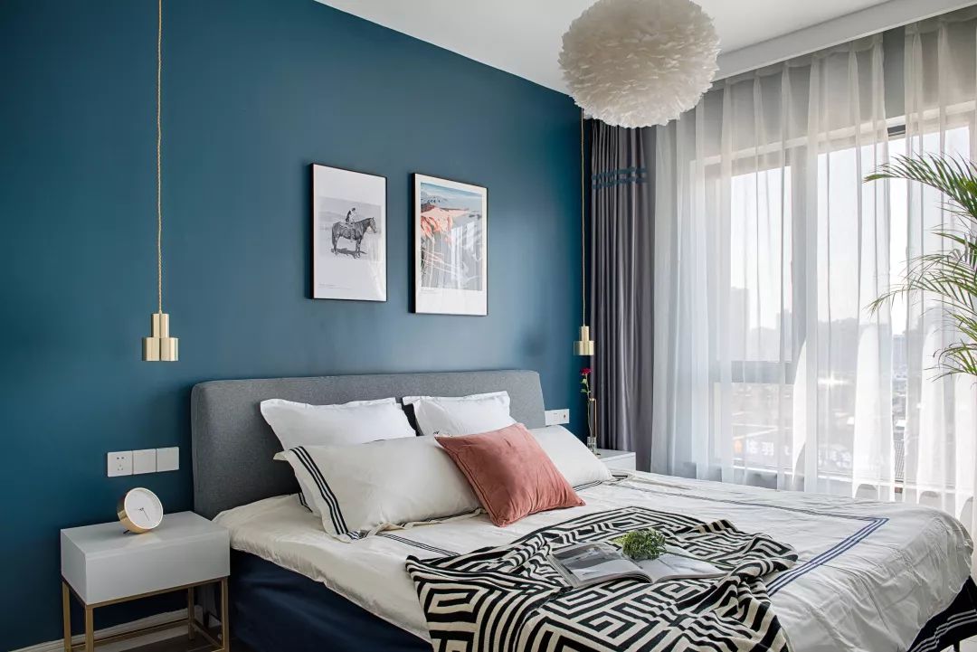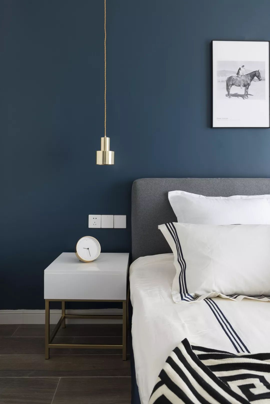 ▲ 主卧墙面选择了沉静的深蓝色,即使是带着一身的疲惫与倦意回归到卧室,也能让人立刻放松下来。
