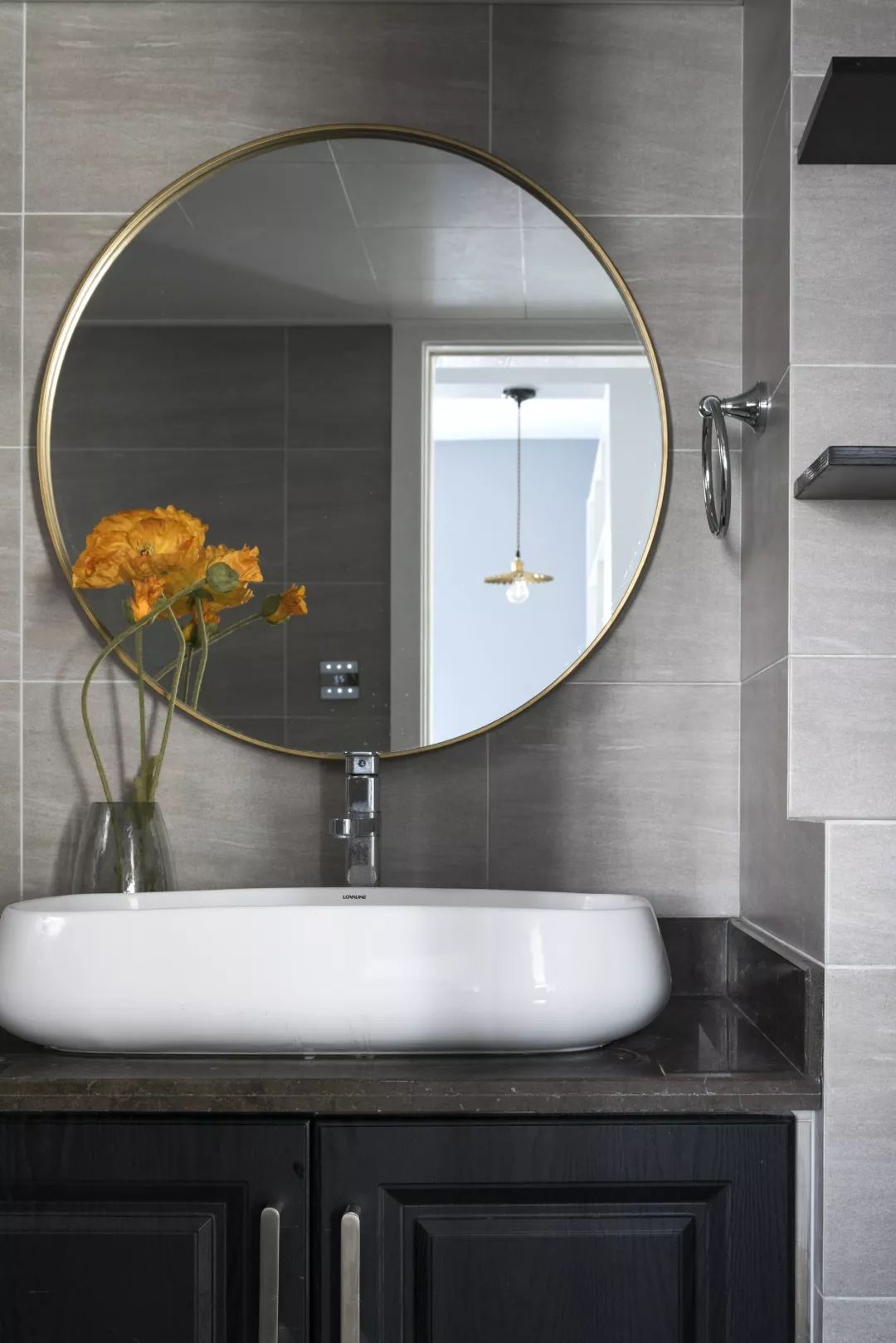 ▲ 台上盆造型美观,墙面挂一个圆形的装饰镜,细腻而精致。
