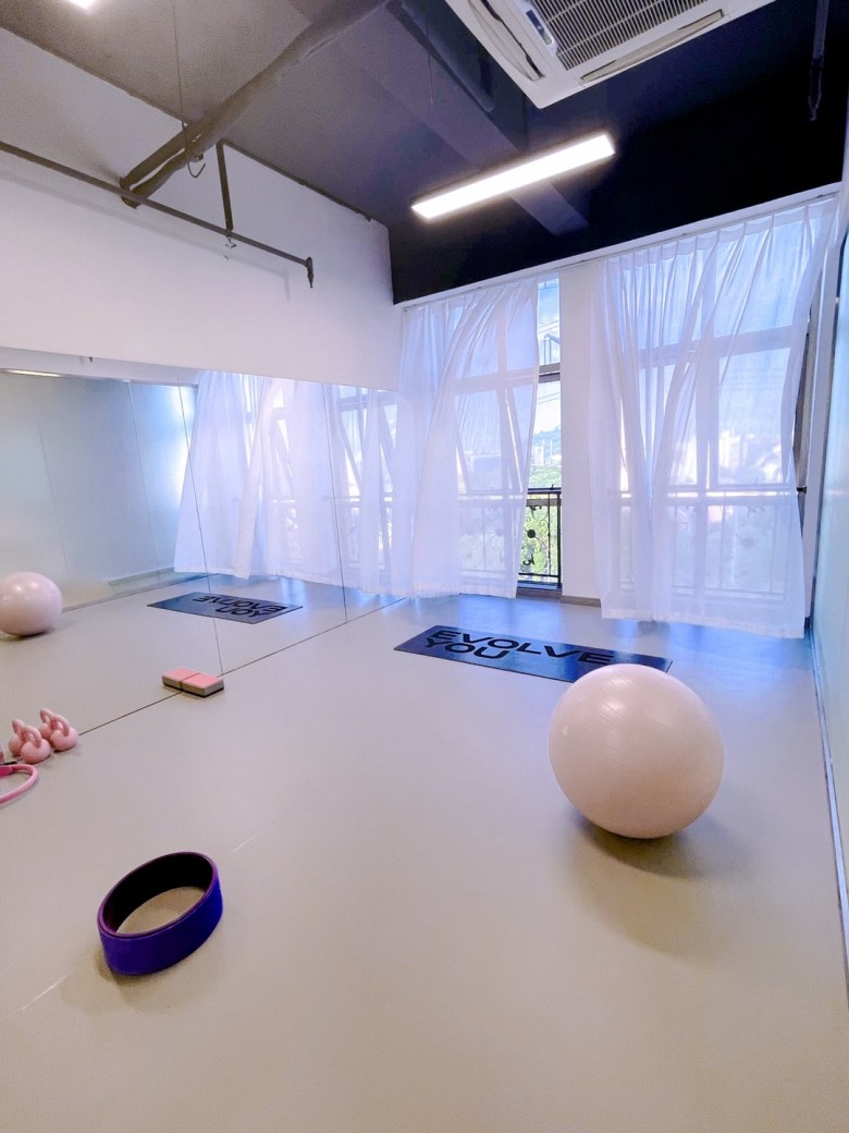 玻璃隔断装好、镜子装好、台面装好、logo安装、壁纸装好、吊环、灯装好、单杠装好、现在铺地胶。