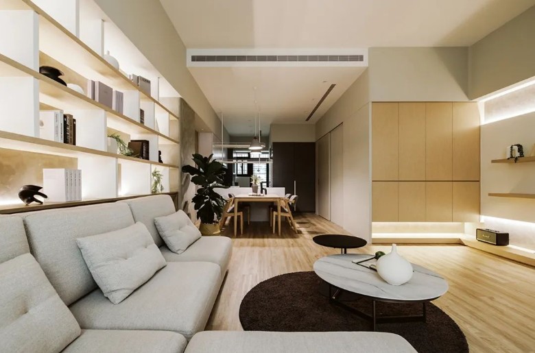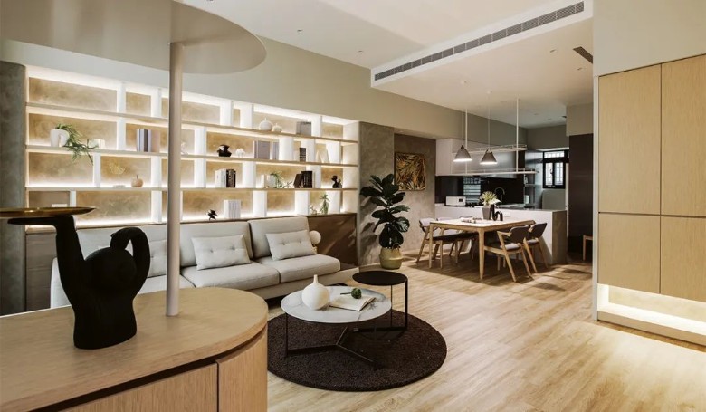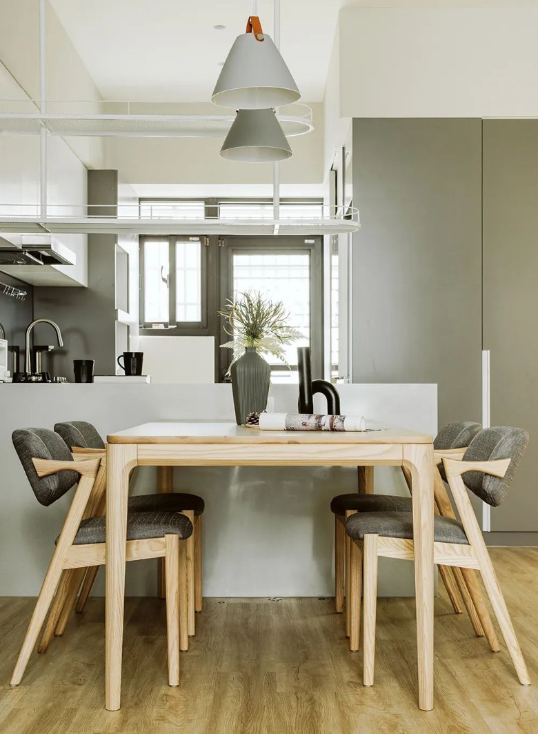 除了灰与白之外,木料亦点缀其中,代表收纳机能