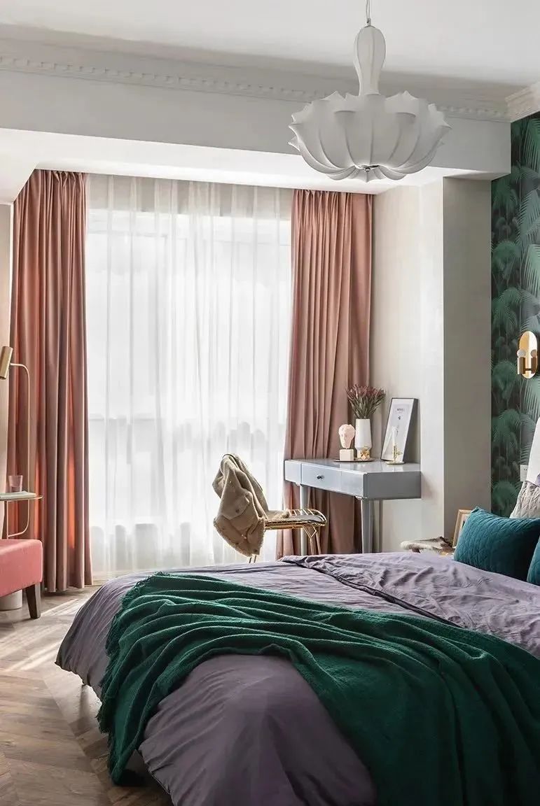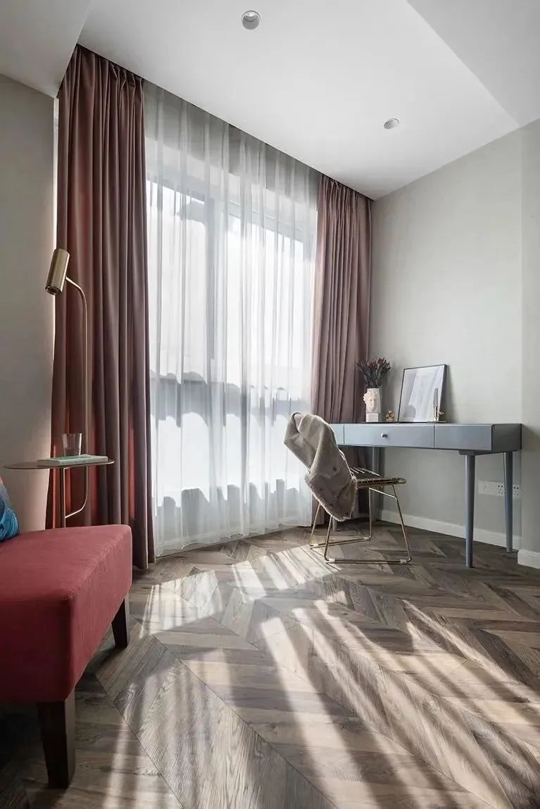 主卧打通阳台,光线更好,更通透明亮,一番简单设计,功能齐全,实用性得以极大提升。色彩搭配上,温馨又清新。
