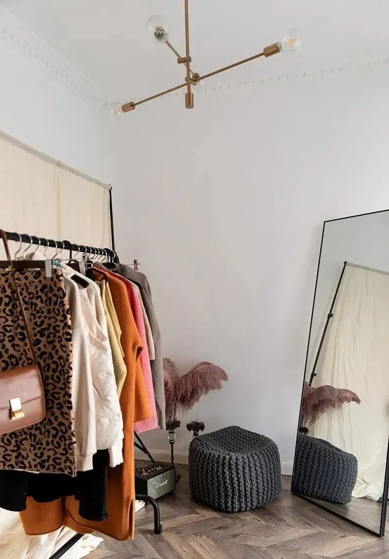 工作室里,还设有挂衣架,日常穿的衣服挂在上面,拿更方便。换衣镜、坐凳,方便使用。