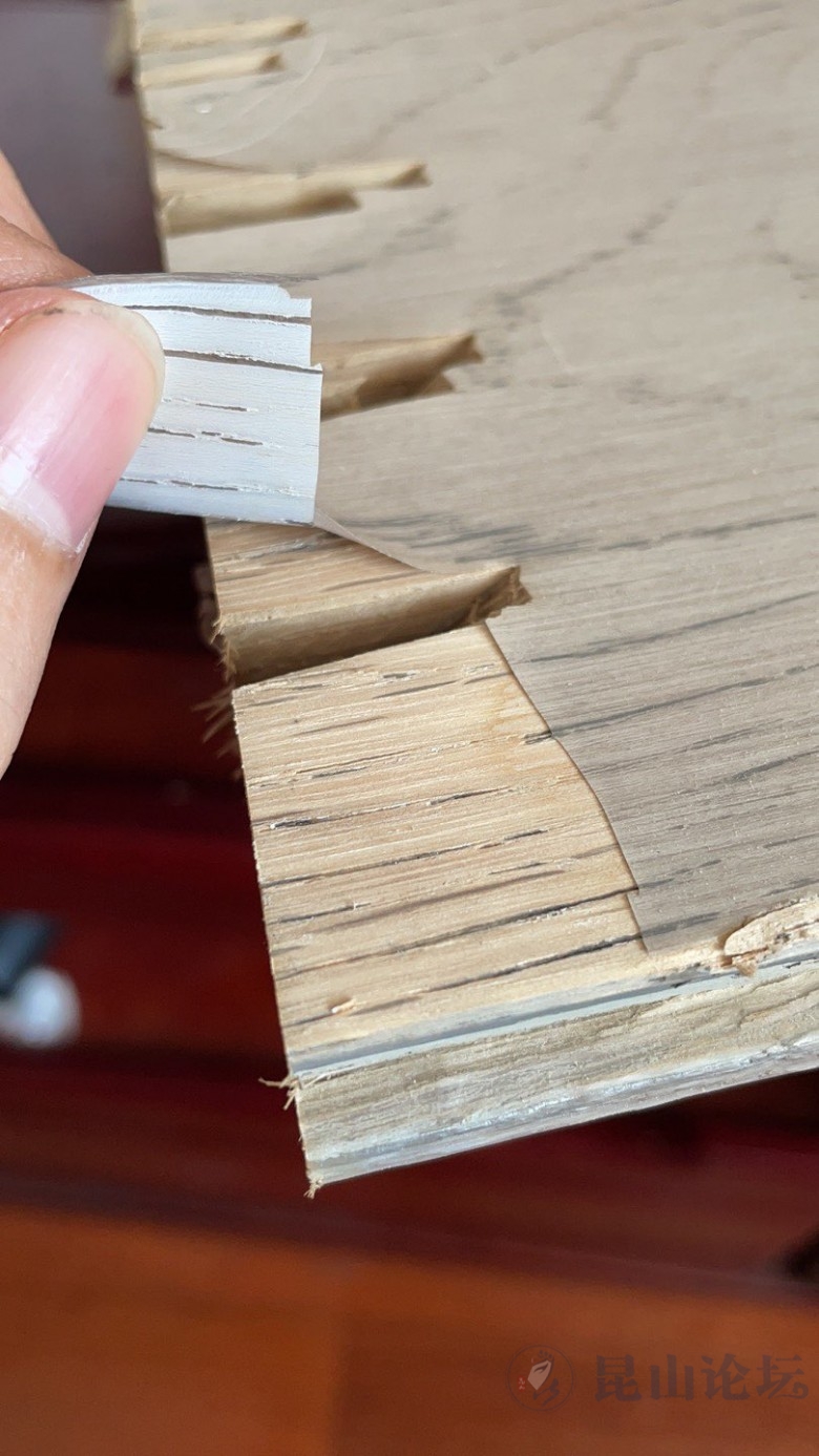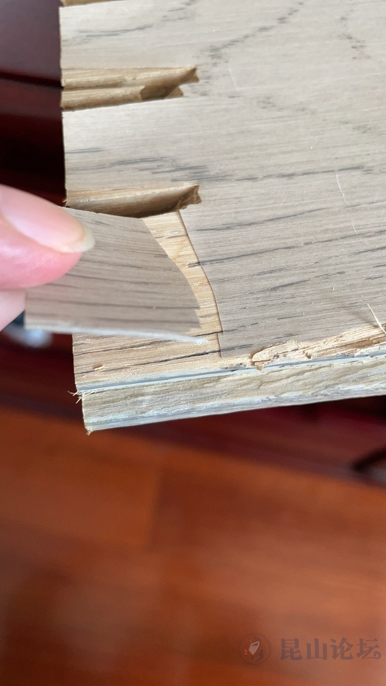 我拿样品泡水一晚上这个状态,这是油漆的地板吗,商家说是油漆的白橡木