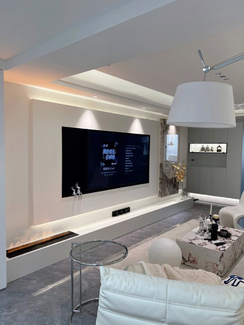 潘多拉岩板点缀+雾化壁炉,太好看了。