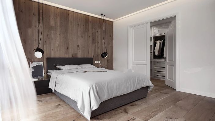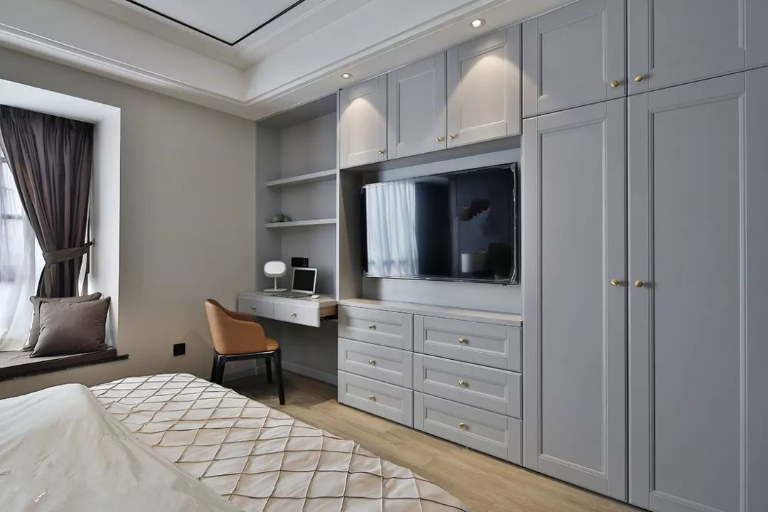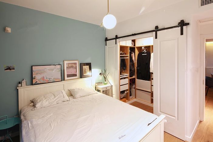 对于小户型和卧室面积不大的朋友来说,入墙式衣柜对空间的利用率会更高。由于是和整个墙体融为一体的,颜值自然比较高。