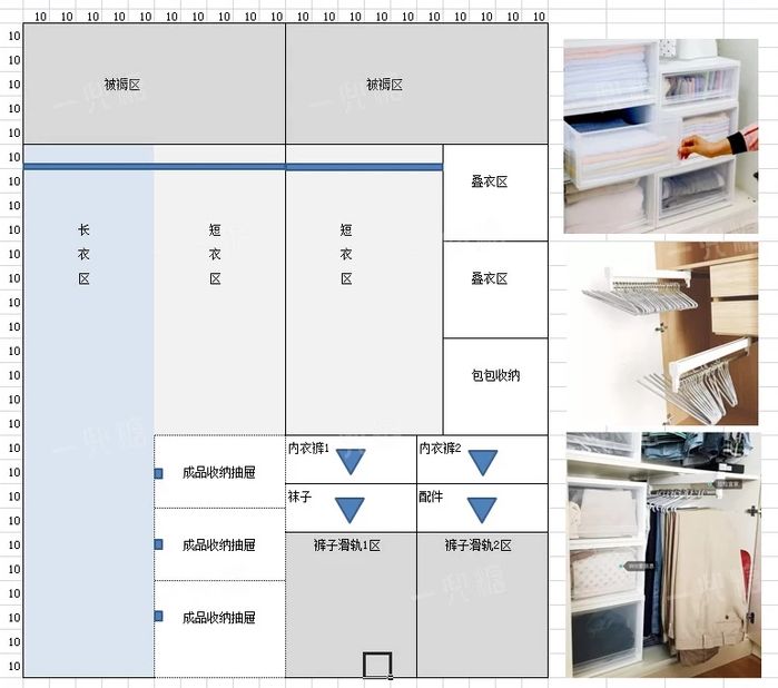 很多衣柜格子少,但是却做的非常高,收纳空间是有的,但是很不方便,衣服堆得越高,越不好拿,如果要取最下面的衣服,那上面的那一摞很容易塌掉,重新叠。