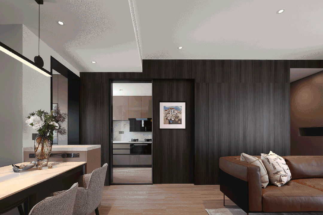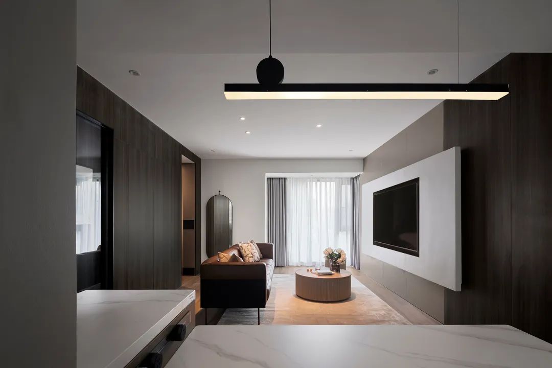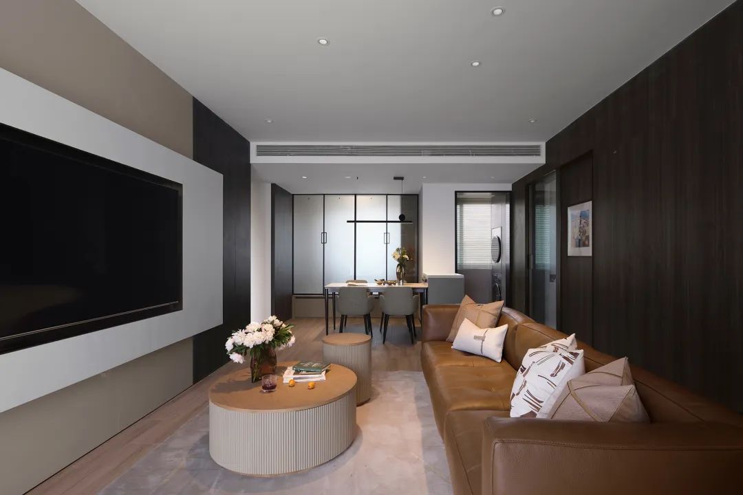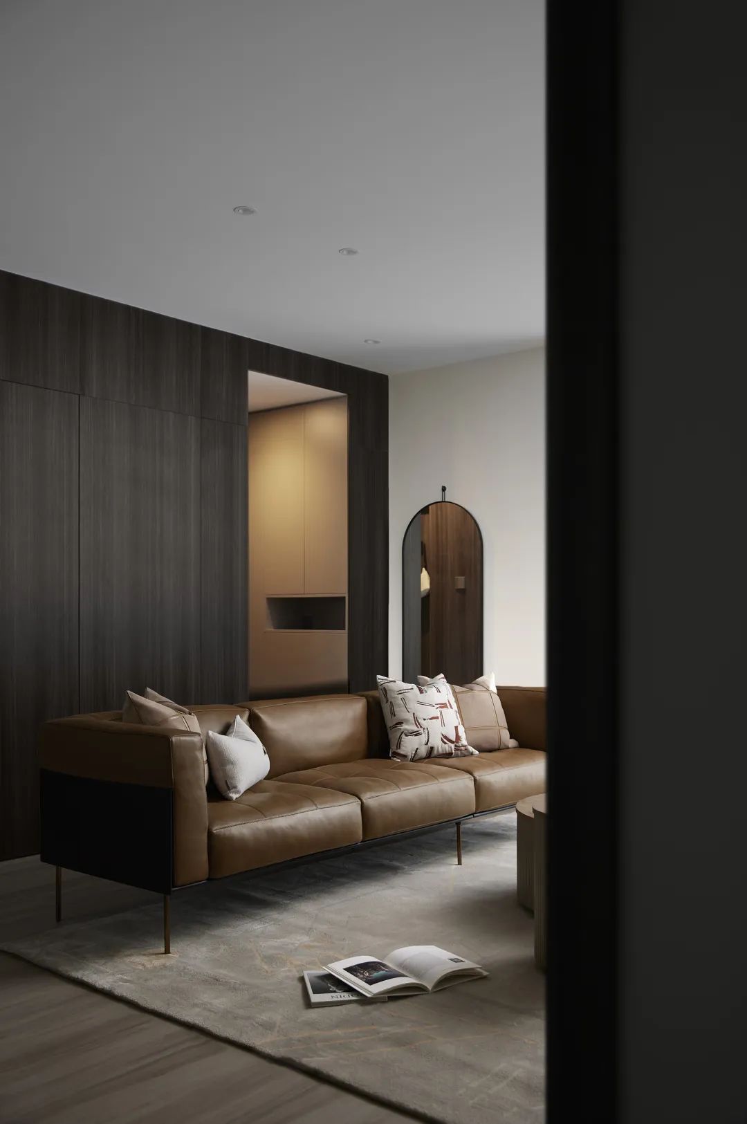 深色木质墙面,为空间奠定了沉稳克制、自然温润的基调。