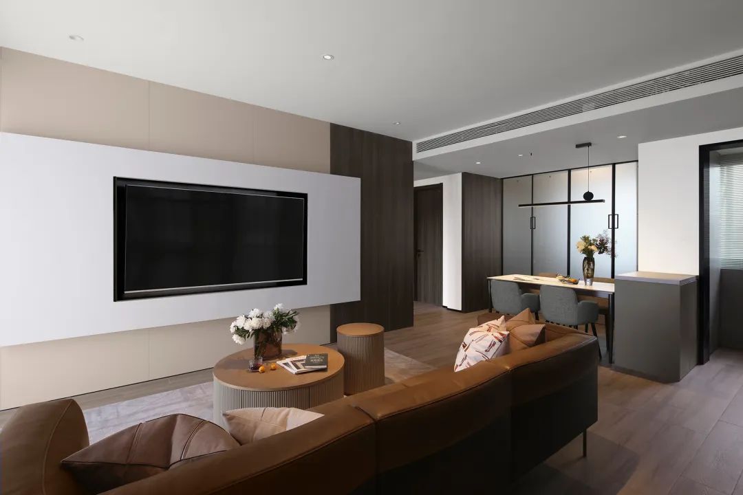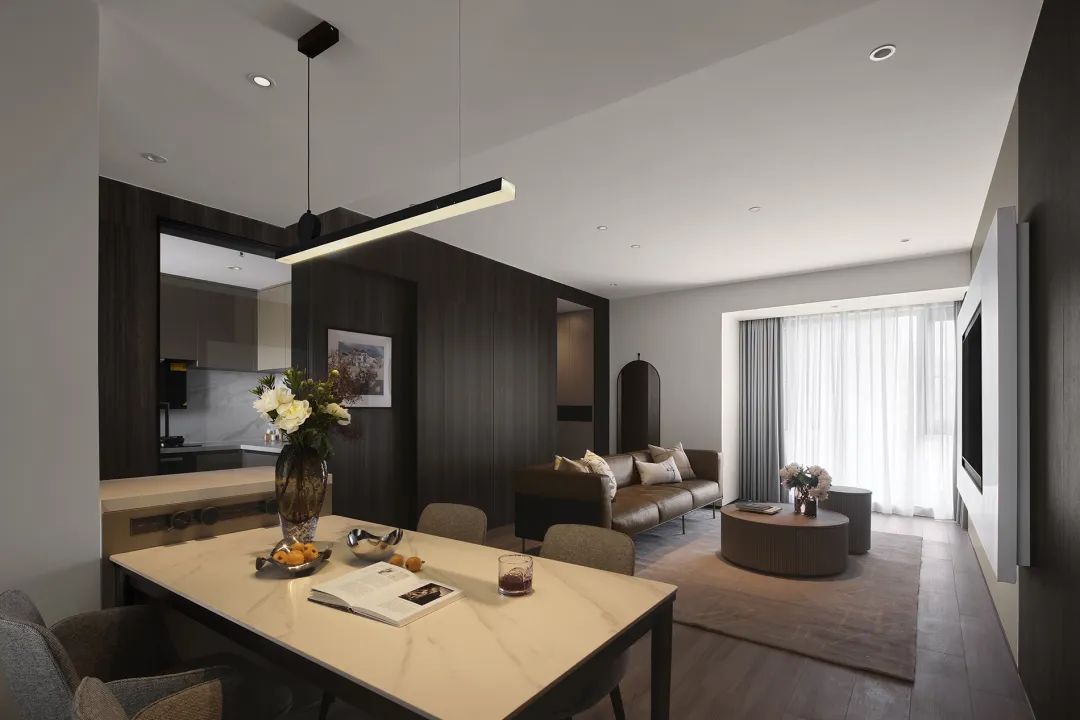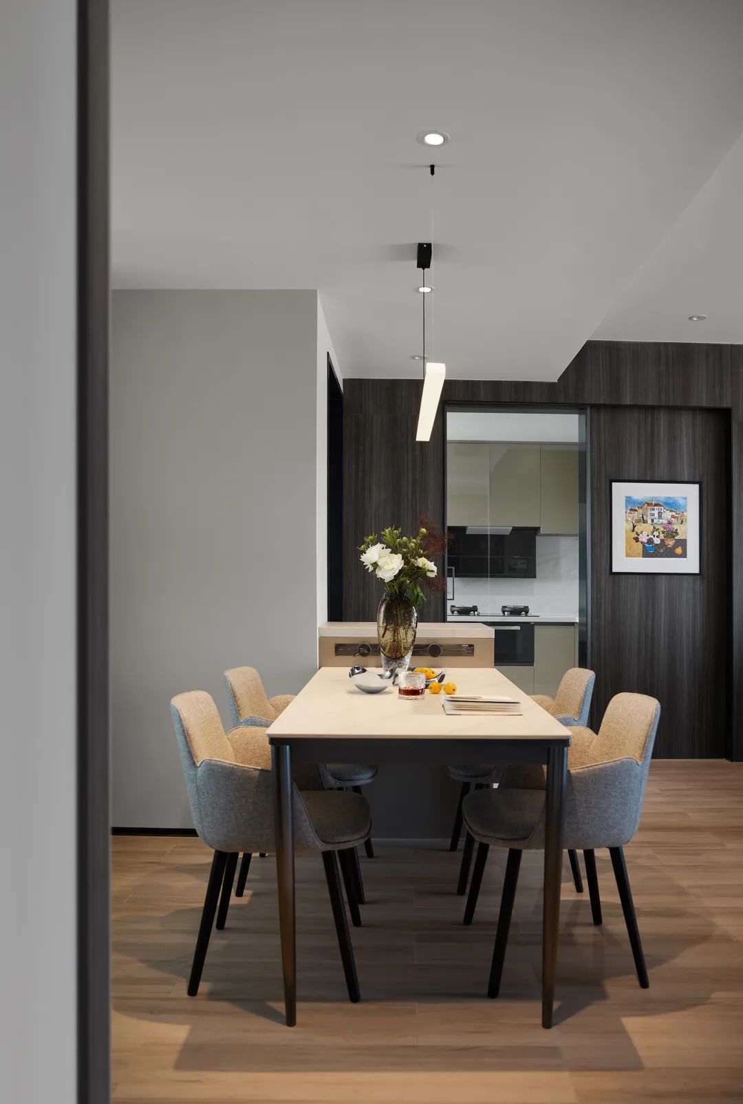 客餐厅一体的格局,开阔通透,极具纵深感,给人带来视觉上的放松。
