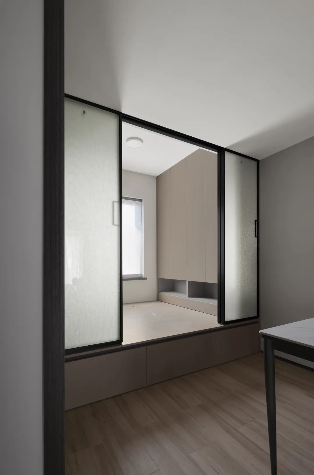 按居住需求打造出一个多功能榻榻米空间,平日里用来进行阅读、喝茶等休闲活动,也可变身客房。