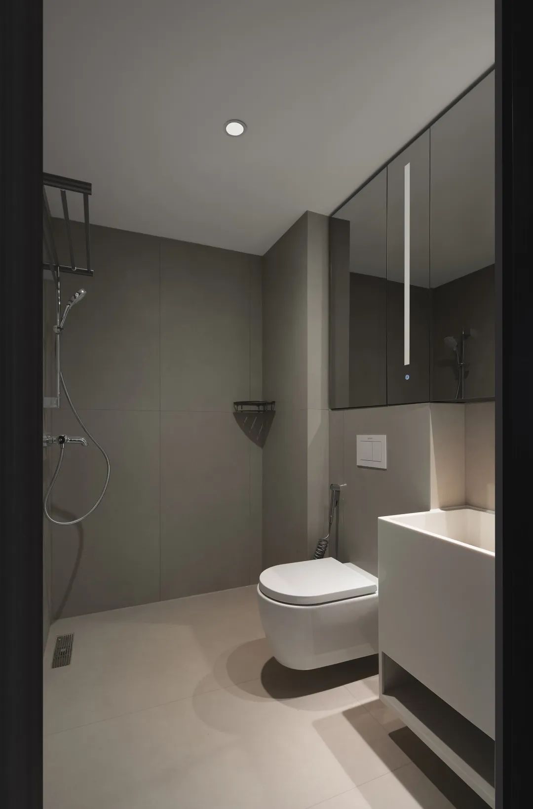主卫拥有良好的采光通风,选用沉稳的灰色调,内敛克制。