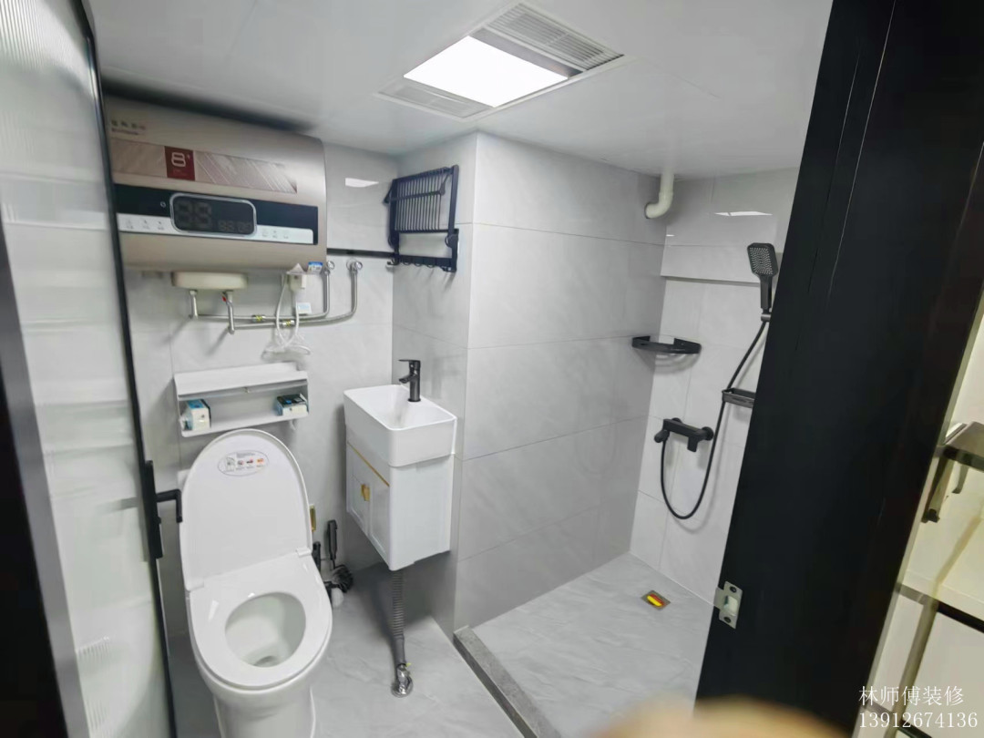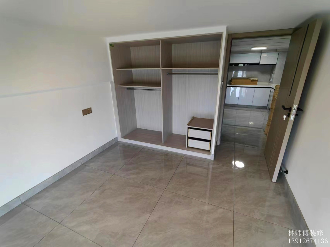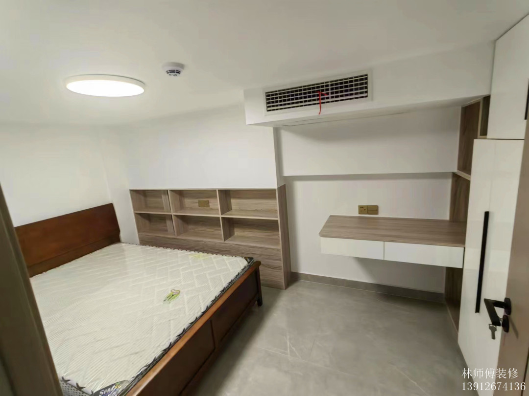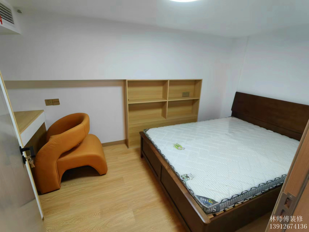 生活区,麻雀虽小,五脏俱全。房间除了床,还有衣柜、书桌,洗手间、厨房也都是干干净净,收纳整洁。