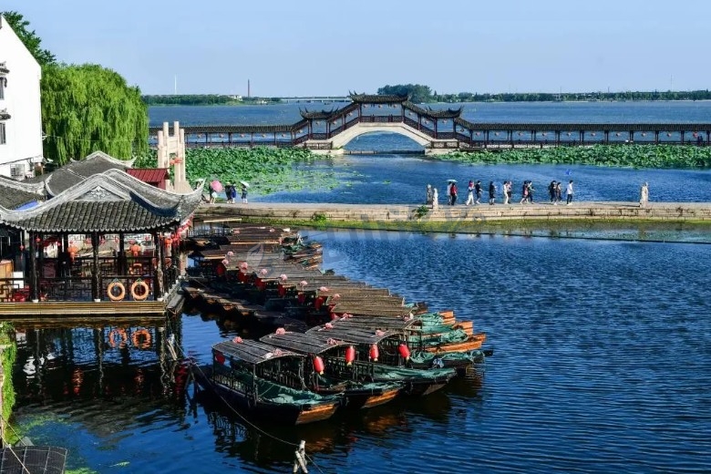 锦溪因水成镇,因河而名,坐拥河流375条,是华东地区水体面积最大的古镇。 每年,大量来自长三角的游客慕名而来,徜徉浩瀚水域,观“五湖三荡”,感受“东迎薛淀金波远,西接澄湖玉浪平”的壮阔景致;看“一河两街”,沉浸“红杏碧桃花烂漫,长堤曲巷水流漓”的诗情画意;品阅渔舟往来的五保湖、如梦如幻的古莲桥、浪漫温情的凌荡湾、穿镇而过的锦溪河,感受一幅铺展出“浓妆淡抹总相宜”的水乡画卷。