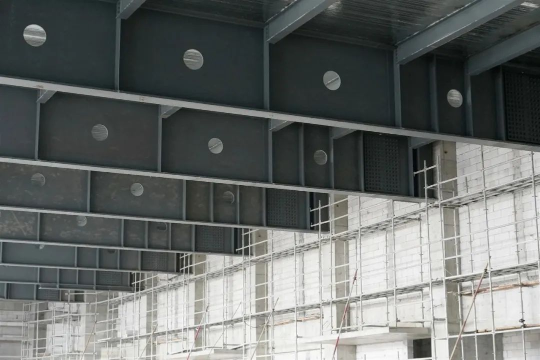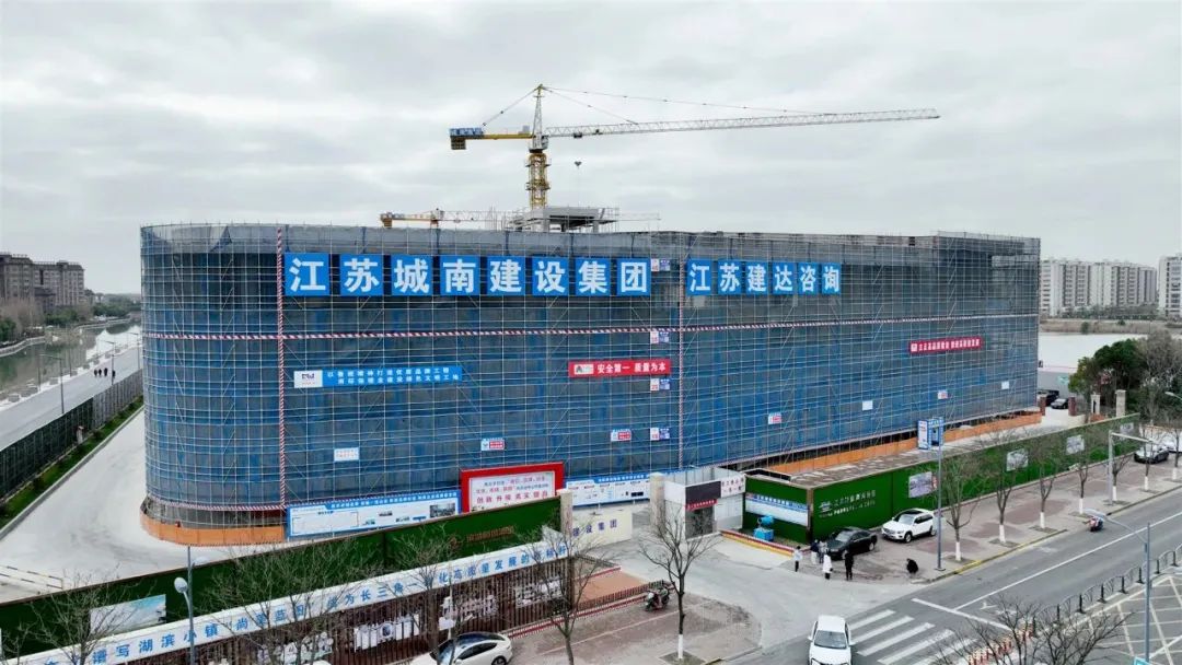 走进项目施工现场,这里给人的第一印象就是“洁序净美”,被评为江苏省三星级文明工地。立面安全网围护整洁美观,堆场整齐有序,路面平整清爽,每个细节都能感受到城市“建设之美”。进入建筑内部,质检人员正在用回弹仪检测承重墙的混凝土强度。深入地下二层,工人们正加紧安装吊筋、支架、风管等设备,为后续消防综合管网敷设提供支撑。
