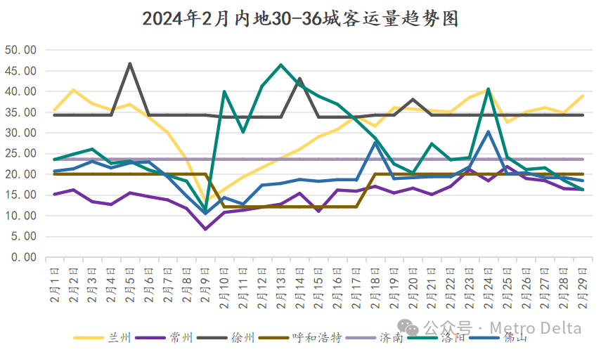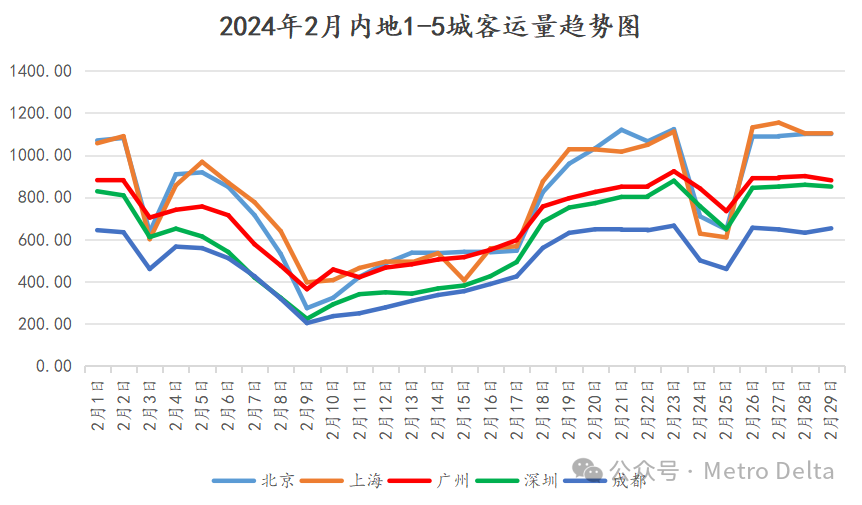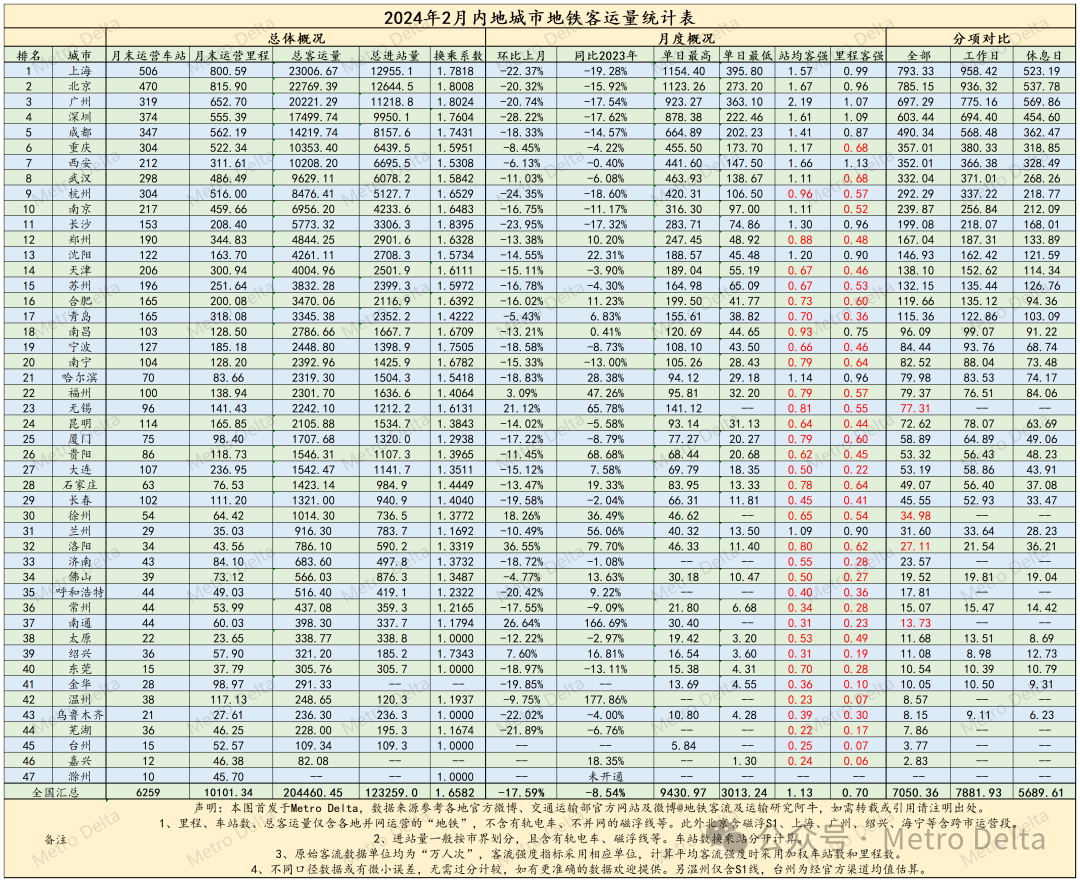 内地2月完成进站量约12.3亿,客运量20.4亿,站均客流强度1.13w/站,里程客流强度0.70w/km。本月全国无新增开通线路。