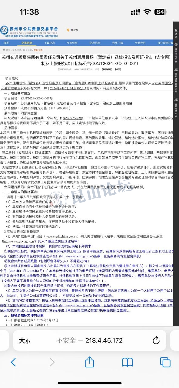 心一辈子勇敢:苏州机场开始规划招标了,祝昆山好运吧![图片] (2024-03-16 14:44)