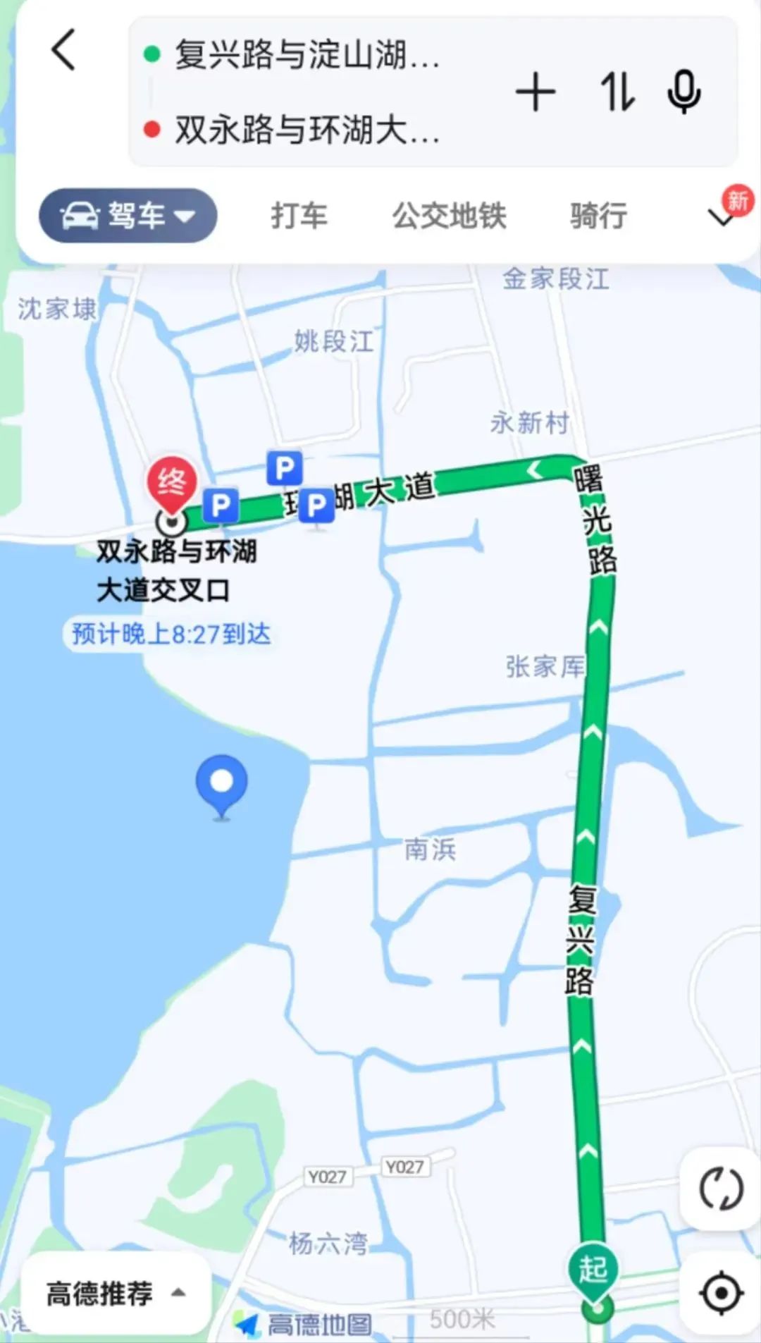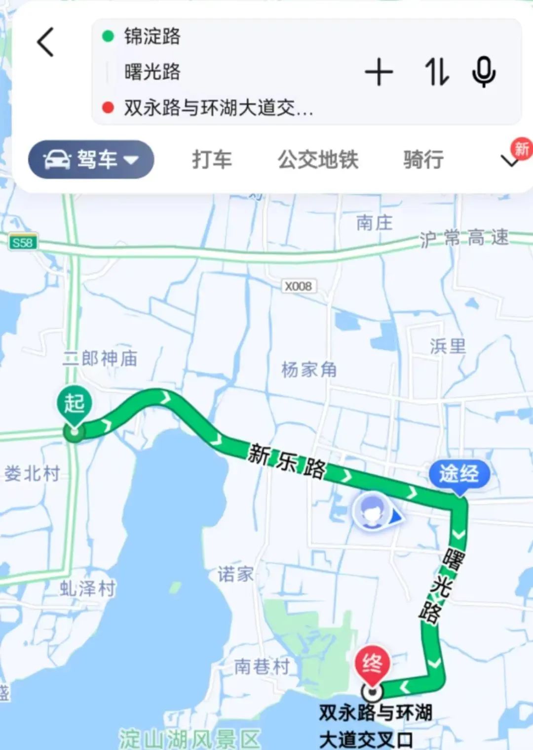 复.兴路方向来车,经曙光路转双永路进入环湖大道。