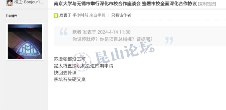 社恐加班:赶快去无锡论坛,人家在说你,就说了不要骂,昆山论坛人家无锡的也一样有人在的 (2024-04-14 13:59)