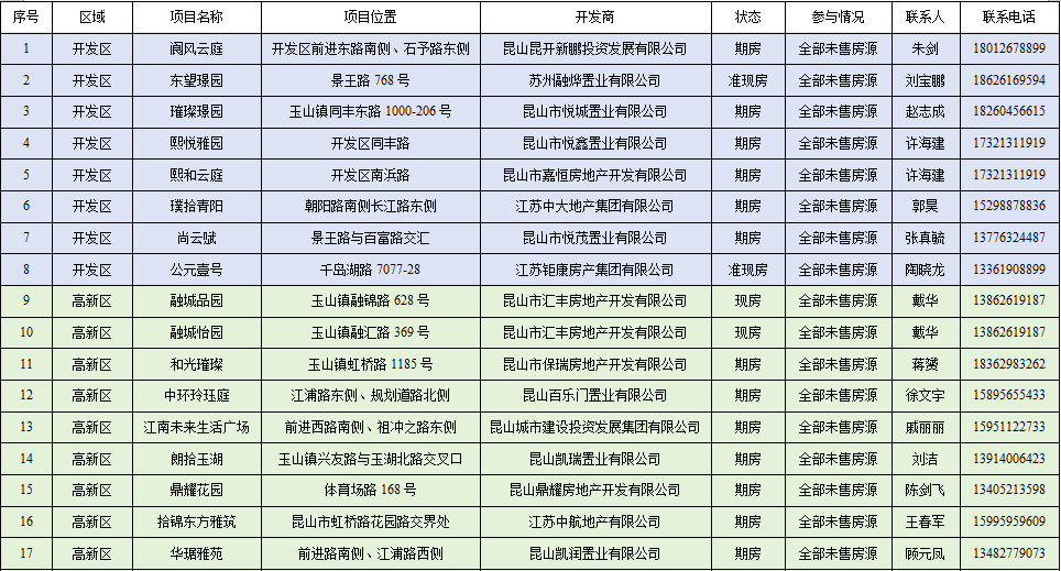 昆山全域在建在售房产项目