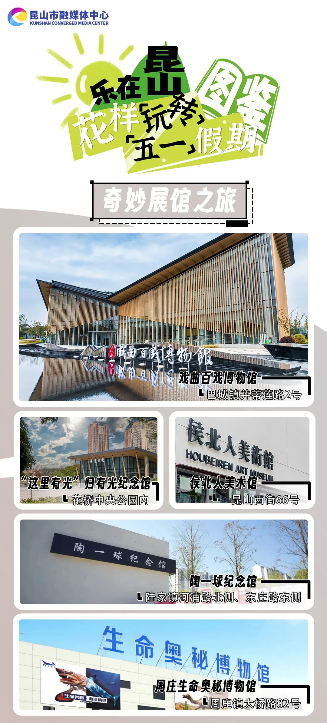 推荐理由:一馆一世界,“馆”中窥江南。人杰地灵、文脉厚重的昆山,散落着许许多多有趣的馆藏之地。戏曲百戏博物馆、侯北人美术馆、生命奥秘博物馆、“这里有光”归有光纪念馆等,它们有的或许不大,却很精致,定会让你“探”为“馆”止,快来开启一场文艺之旅吧~