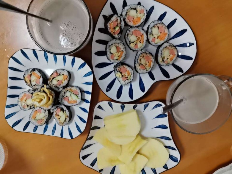今天的早餐,分享快乐。从小到大家人给的概念就是早餐一定早吃好,这样一天能量才满满的,所以自己工作后,当了家长后对早餐还是一直在延续,不管好赖都会坚持做,而且基本不会太过敷衍。今天的寿司也很简单,这个简易早餐在我家频率还不低哦,关键孩子也喜欢