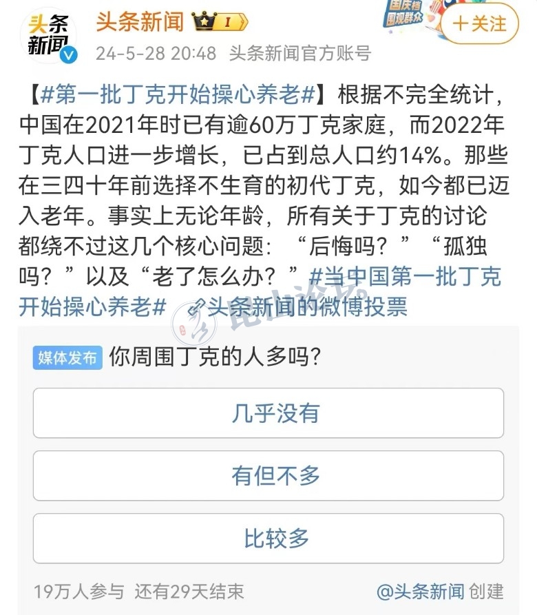 据说第一批丁克已经开始操心养老了,我周围也有丁克的但基本都还比较年轻,想法也没啥变化,看着过得还挺滋润的。