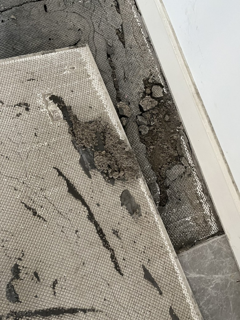 各位请查看撬起后的照片,帮忙分析一下到底是装修工艺问题还是地砖问题。
