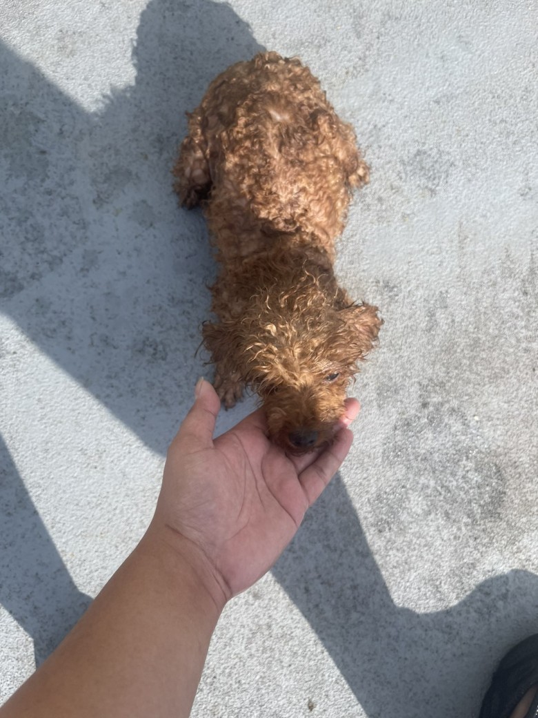这泰迪以前是家养的犬 还有小牌 找了好久 也没消息 感觉像是外来打工者一时兴起养狗 养养觉得没意思 便把它抛弃