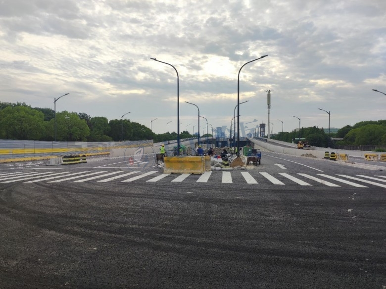 琉璃心:图一二三四都是通泾沙路的最新状况,其他路都差不多好了,这几十米根本没打算通车,现在每天都有工人在栏杆喷漆,早上在通路灯的电线,最后一张是泾新路口桥下在弄人行道,南科路也全部好了,就差隔音屏,人行道等收尾工程就可以通车了 (2024-07-17 11:59)
