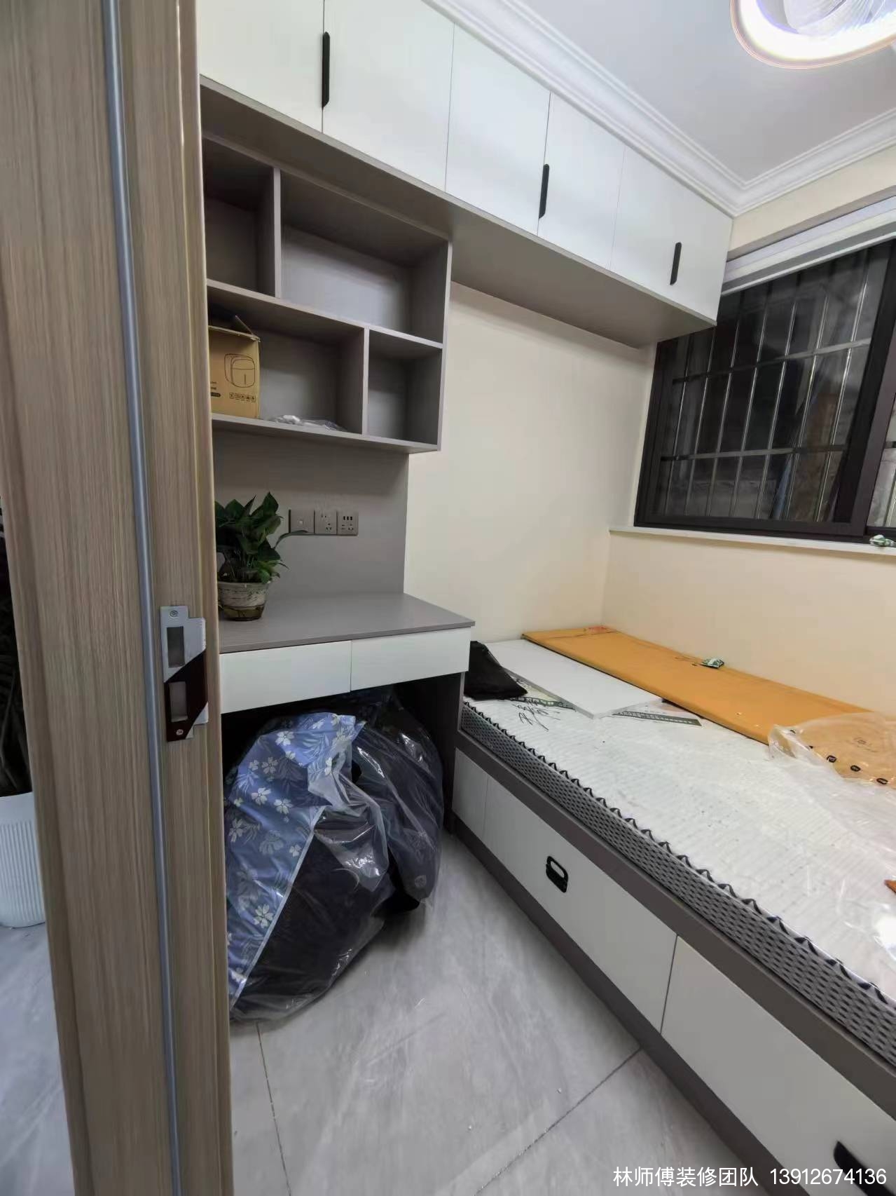 这是改造出来的小房间,作为儿童房使用。榻榻米+书桌的组合设计,让孩子不仅能拥有自己的小天地,也让家里的收纳能力瞬间提高了很多。