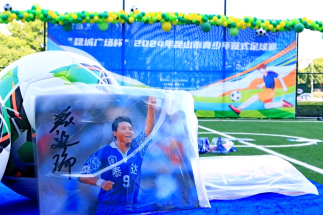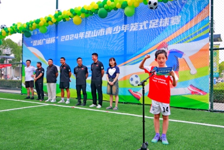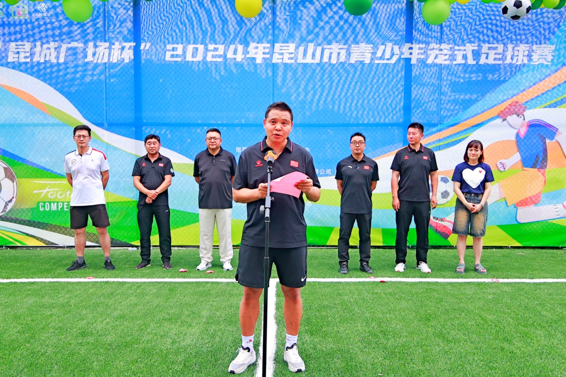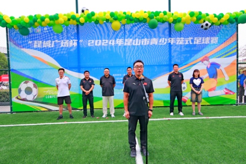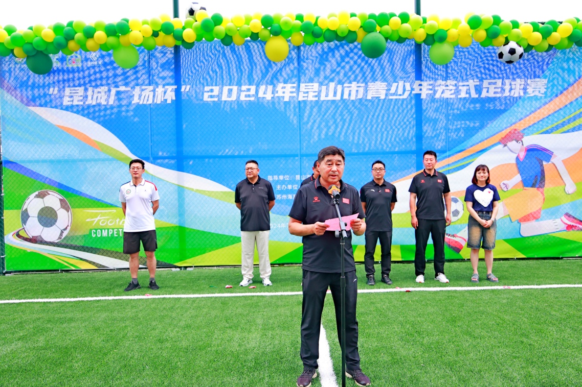 张效瑞在开幕式上讲话。他称赞昆山是富有诗意又充满活力的好地方,并希望昆山热爱足球的青少年珍惜当下的大好环境,勇于担当、敢于超越,不负韶华保持热爱,坚定理想永不言弃。