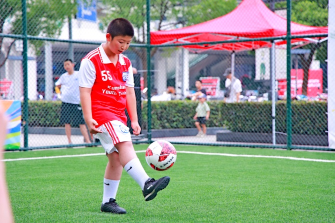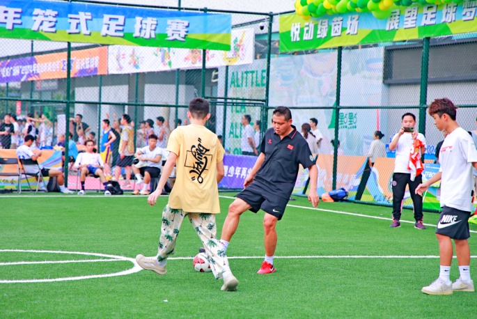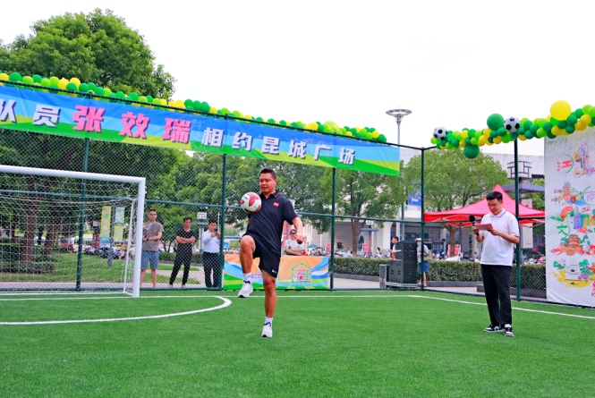 随后,张效瑞在现场展示了个人技巧秀、与现场球迷和观众分别进行了专业队和亲子队的颠球比赛、热烈的趣味射门游戏、全场欢乐大合影、3v3对抗赛现场教学指导等一系列嗨翻全场的交流互动,昆城广场笼式足球场一时间成了欢乐的海洋。和心中的偶像近距离地交流互动,对于孩子们来说是激励更是鞭策。