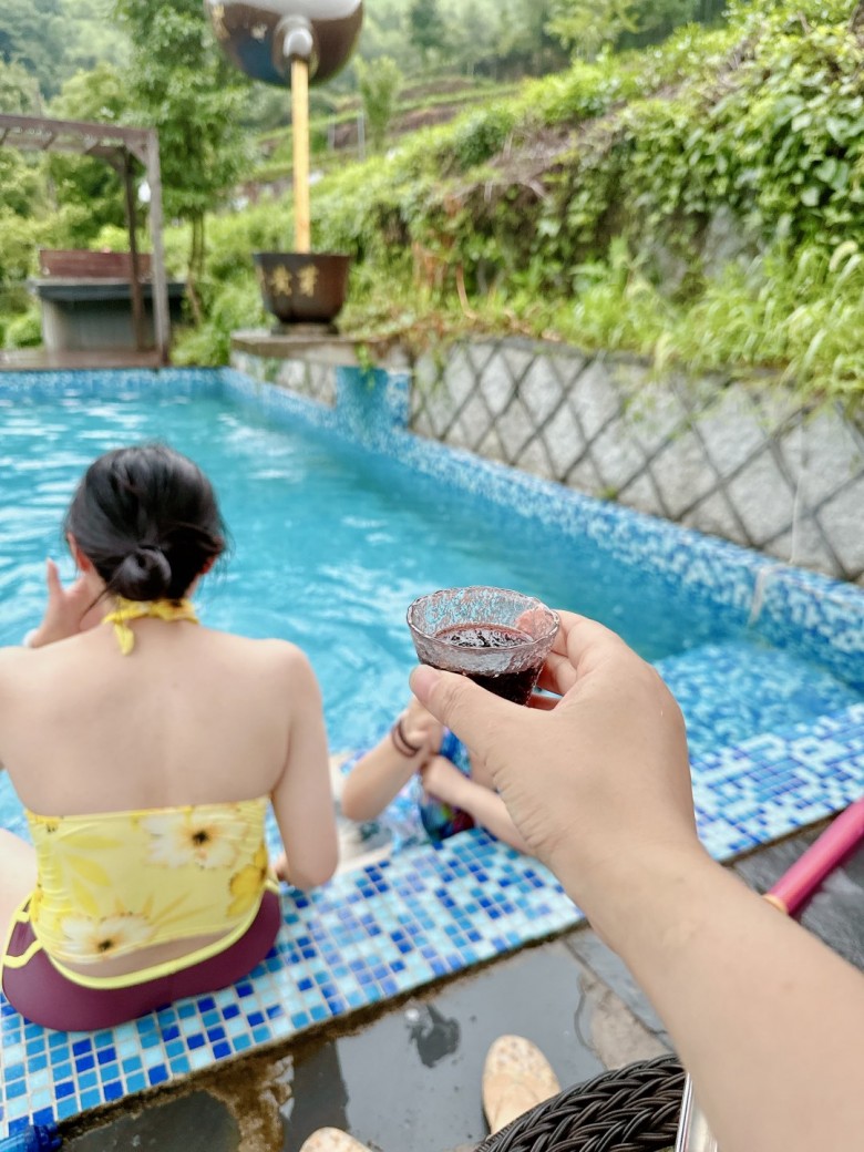 少女心松鼠:四点的天色因为那会下了那阵雨之后阴阴的,回到民宿换了泳衣在民宿泳池玩了,开始好大儿不愿意换泳衣,以为水不干净,看了之后才愿意去换。[表情]虽然下着小雨,听着音乐玩水,玩饿了直接煮个泡面,泡面配红酒什么都有。[表情]没什么来日方长,我们现在就在快乐。[表情][atta .. (2024-08-04 17:58)