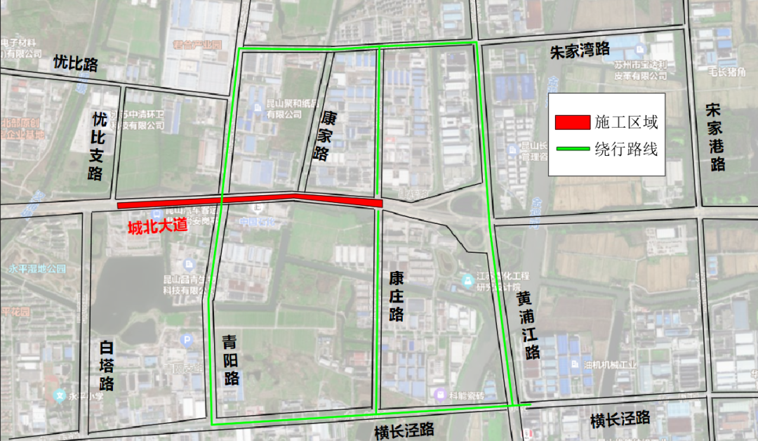 △城北大道(白塔路至康庄路)导改绕行图
