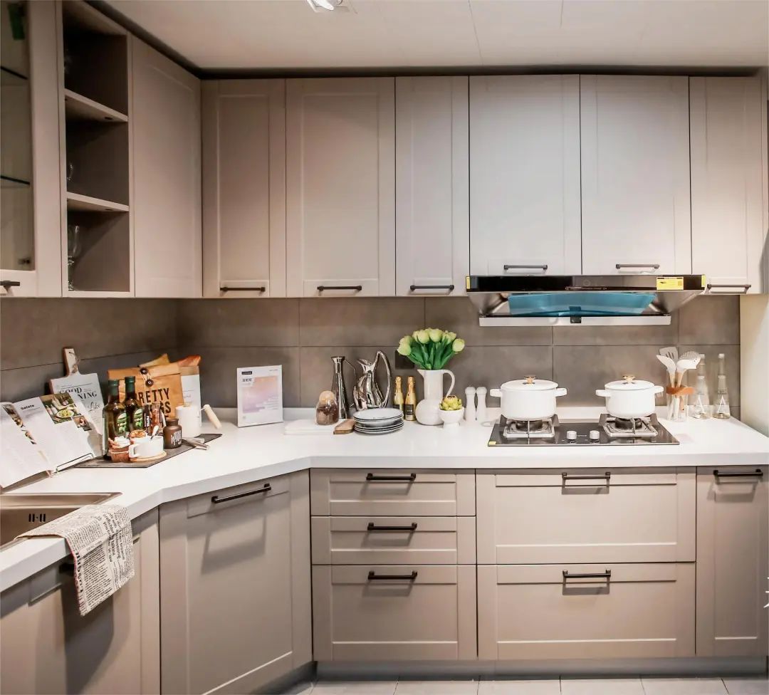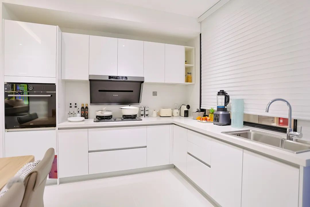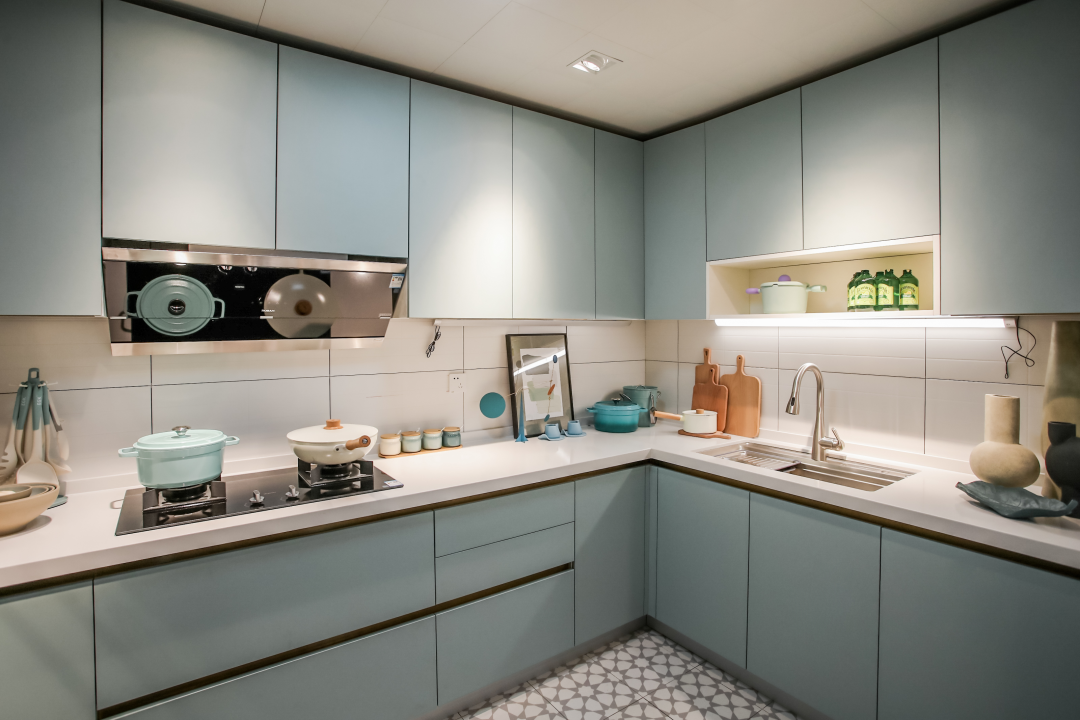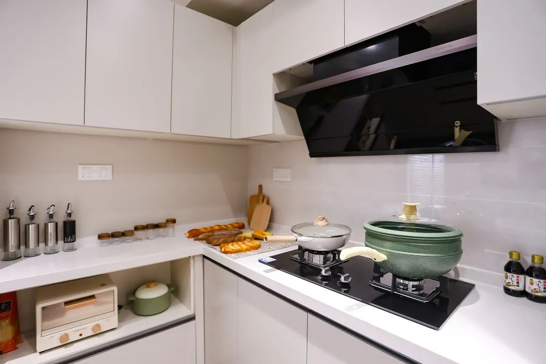 厨房打造橱柜时建议大家提前想好自己家厨房的家电位置,比如要做嵌入式,就要在定制橱柜时和设计师沟通好尺寸,还有电源插座。