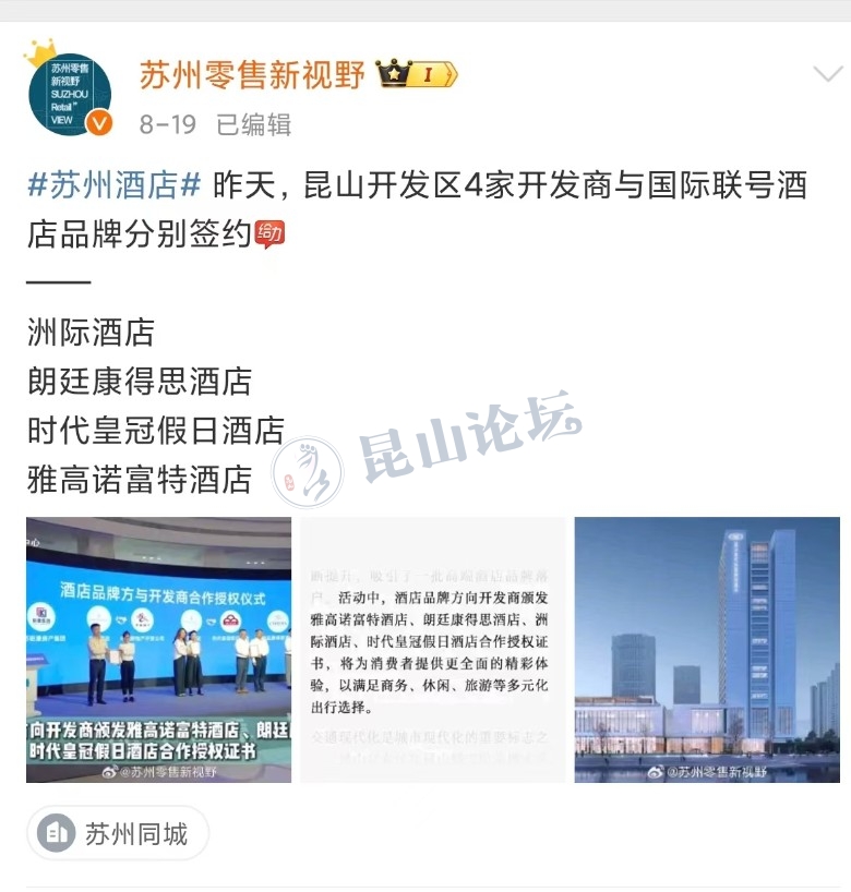 心声共鸣:签约啥啊,不是早就定好的么,牌子都早挂了,新闻去年就出了。然后皇冠假日酒店里又冒出个假日酒店,这个在昆山好像没怎么见过。[图片] (2024-08-21 10:42)