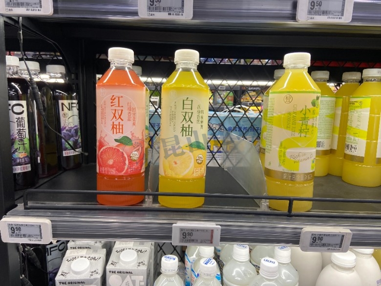 第四张照片三种口味的柚汁,980毫升装,9.9元一瓶