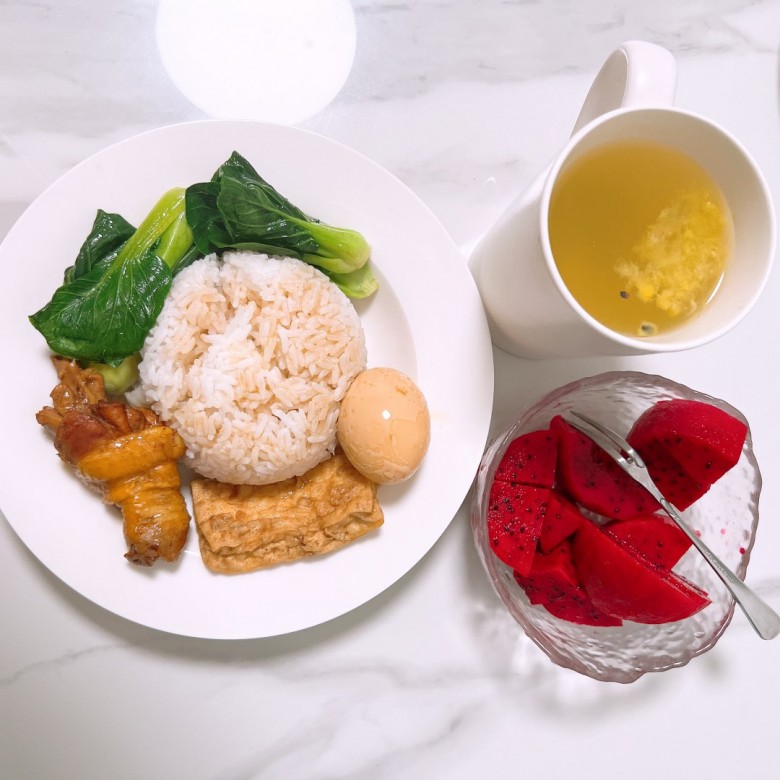 今天中午做的煲仔饭,一锅饭我们俩吃完,他给了4.5星好评,因为煲仔饭酱油放太少了。