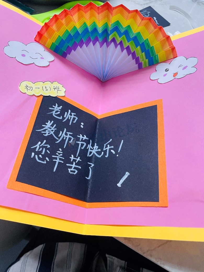 97606816:我们孩子老师说了,什么都不要送,家长非要送东西的话 ,让孩子亲手做张贺卡送给老师