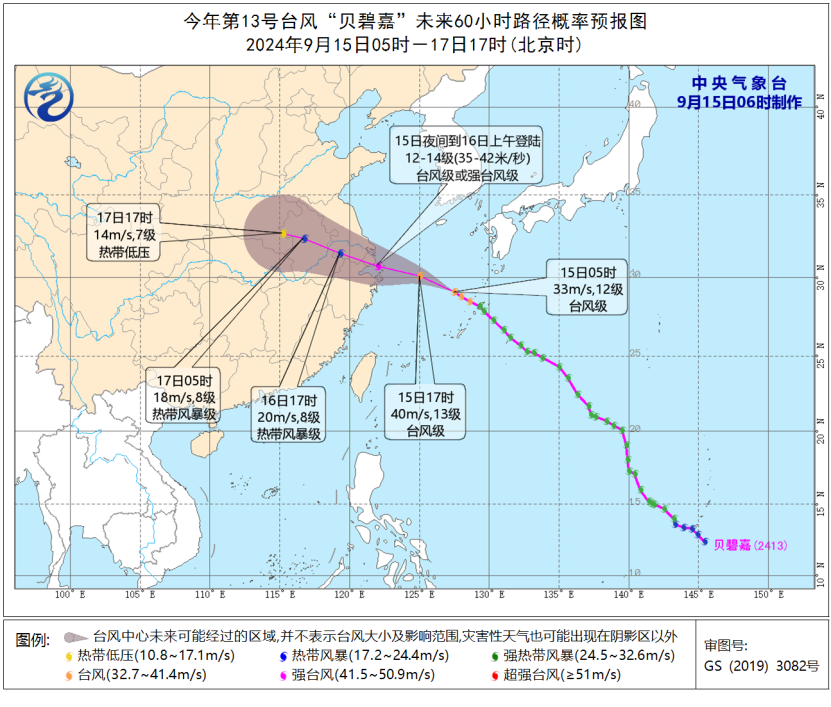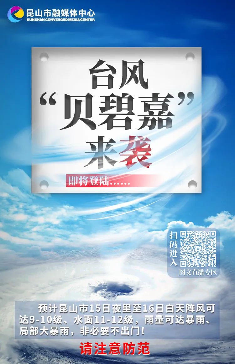 预计“贝碧嘉”强度将继续增强,逐渐向华东沿海靠近,最大可能于16日早晨07时前后登陆上海,登陆时为台风级或强台风级(12~14级),登陆后继续西行,白天台风中心将经过苏州地区,我市位于10级风圈内。此次台风路径较为罕见,风雨具有一定极端性,需防范风、暴、潮叠加灾害影响。