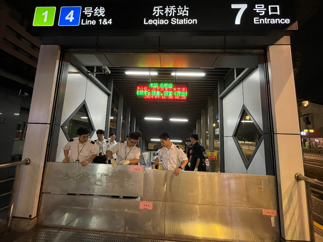 为应对恶劣天气,线网所有车站提前在各出入口和防汛薄弱点配齐了防洪吸水膨胀袋、沙包、防淹挡板等应急备品,并进行了堆沙包、组装防淹挡板练习,开展恶劣天气应急演练,熟练掌握处置流程。同时,车站还通过加密巡视风亭、出入口、电梯等薄弱点,确保早发现早处置。此外,各车站确保在苏员工手机24小时通畅,随时准备投入应急抢险工作。