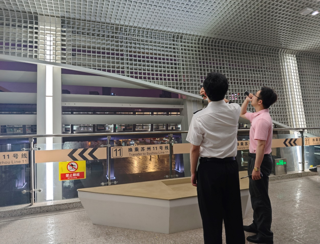 在6号线临顿路站、8号线车坊站等新开通线路车站,工作人员严格对风亭风井、大空间、车站顶棚悬挂物、在建工地等隐患部位加强巡视。同时与施工单位加强沟通协作,对预留孔洞的封堵情况及时排查,对发现的隐患立即排除。