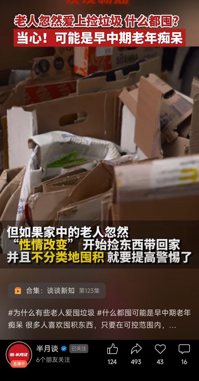 不吐不快阿:我和自己父母住,沟通不了,他们都是经历过三年自然灾害的。车库塞满,还捡回来放家里,说多了,会感觉嫌弃他们,分开住又不放心,毕竟年纪大了,只能睁只眼闭只眼。 (2024-09-18 20:38)