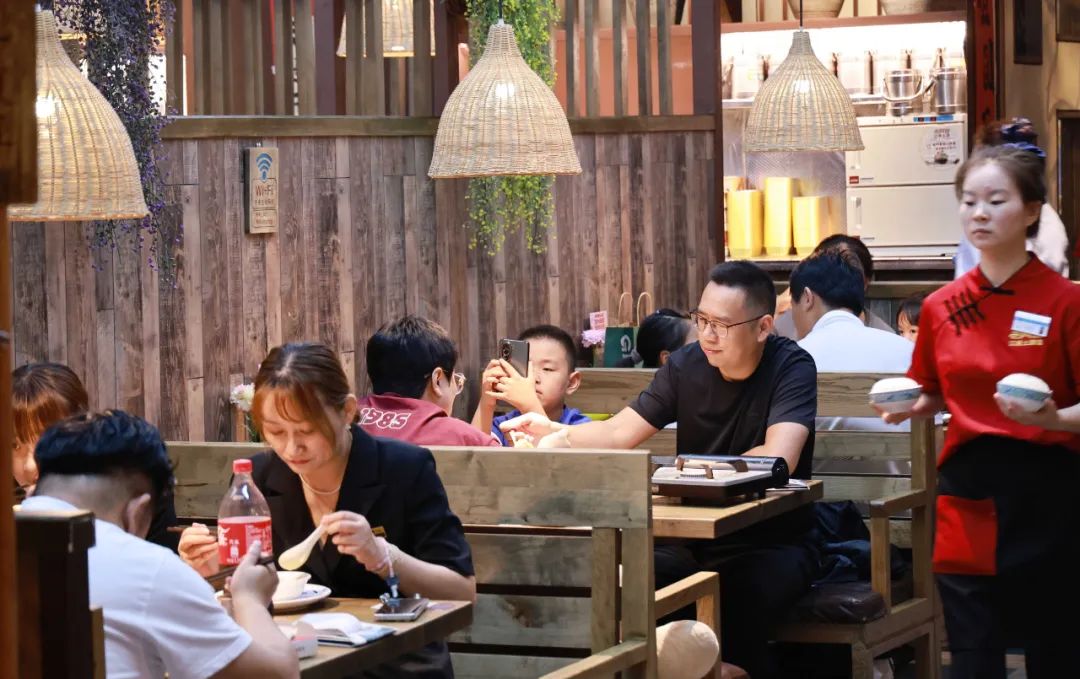 线下餐厅爆满,线上消费也持续火热。用餐高峰期间,小昆注意到,前往餐饮店取餐的外卖小哥络绎不绝。国庆长假期间,不少餐饮店在饿了么、美团等主流外卖平台上也同步开启了优惠活动,一些店铺的招牌菜、特色菜甚至低至五折,让市民足不出户也能享受经济美味的大餐。