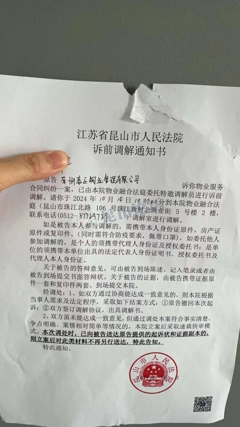 • 2024-10-07 09:27 kitten2021: 看起来法院的原则是先调解 毕竟法院的人也生活在昆山 物业是啥,他们自己也知道 如果判决,业主亏大了