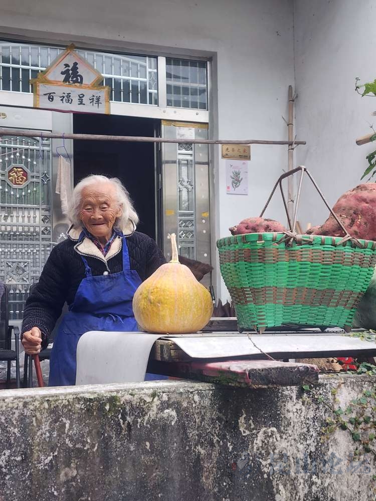 从祖源走时,看到一位老奶奶白发苍苍,笑容可掬,干净利索,拄着拐杖看着过往的我们。那笑容几乎感动了所有人,那是个美好的时刻。
